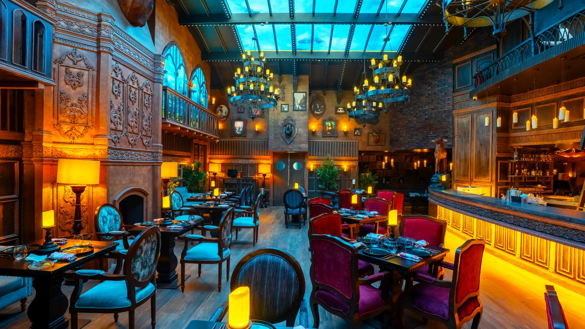 bars and the enigmatic Red Room create a world of indulgence and allure. On the table, a refined