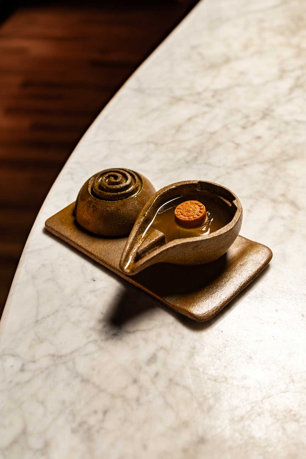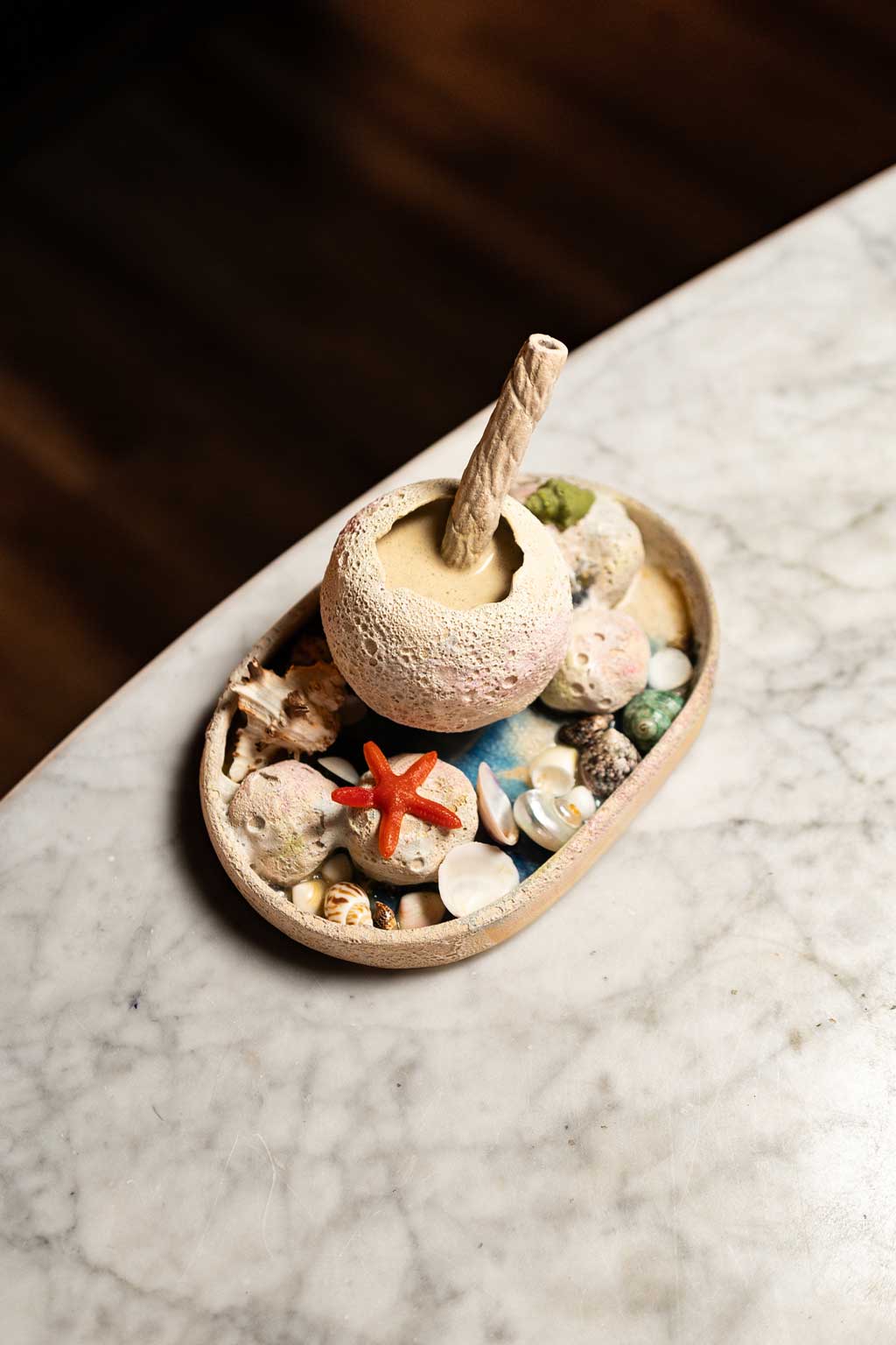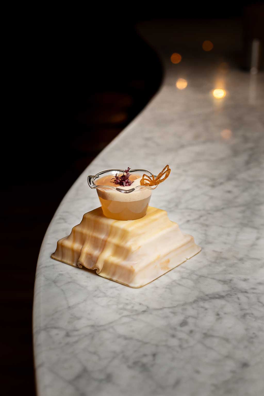 Creamy, aromatic, marineSanta Teresa 1796 Rum, carrot cake, Remy Martin, salicornia and lemongrass, coconut cream and pepper syrup.