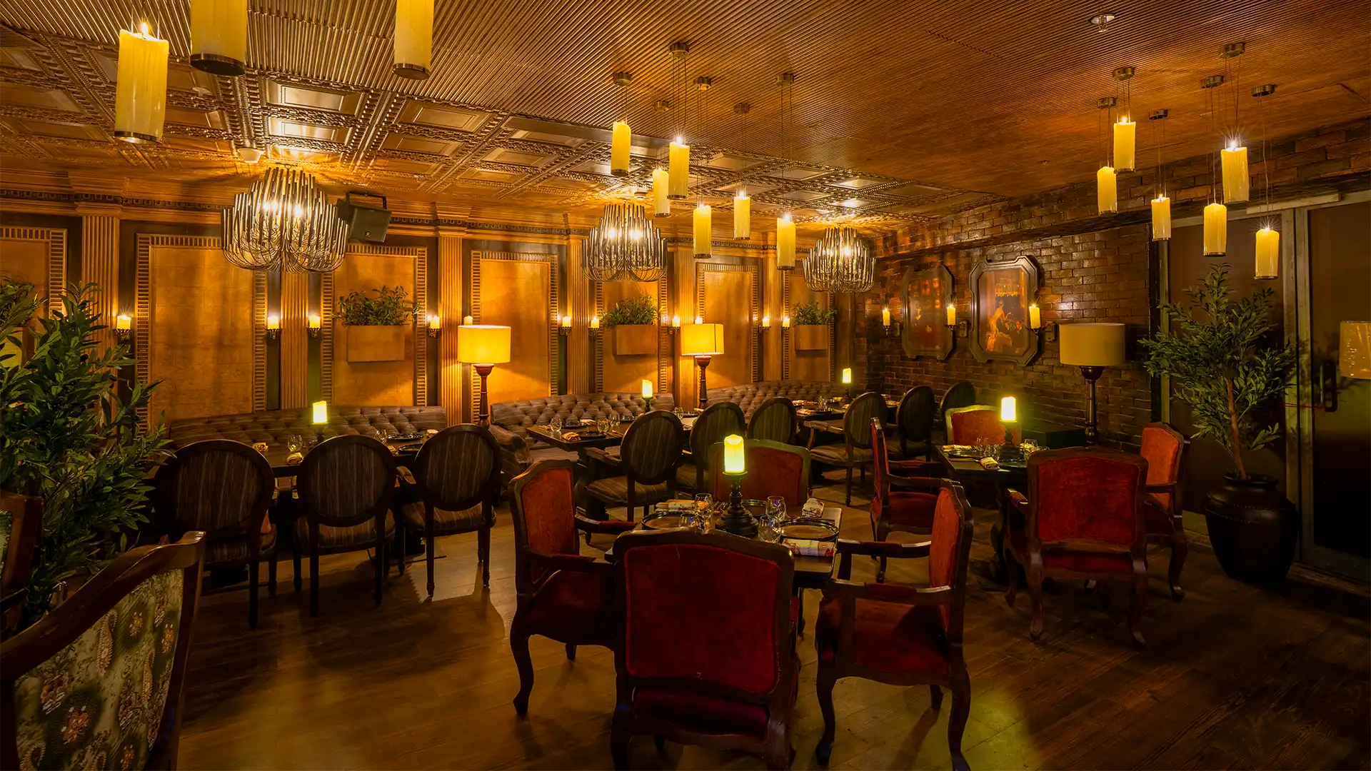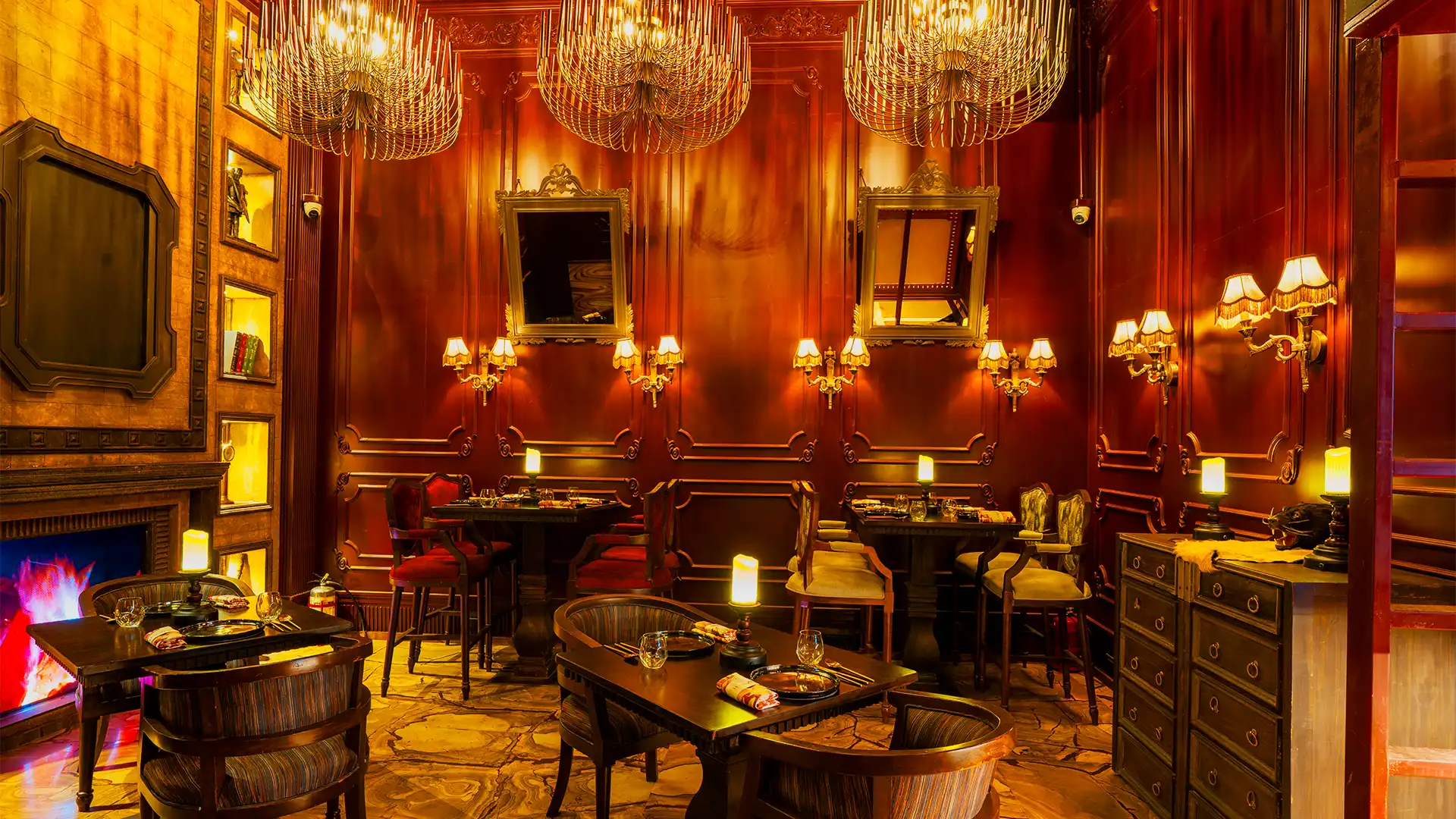 bars and the enigmatic Red Room create a world of indulgence and allure. On the table, a refined